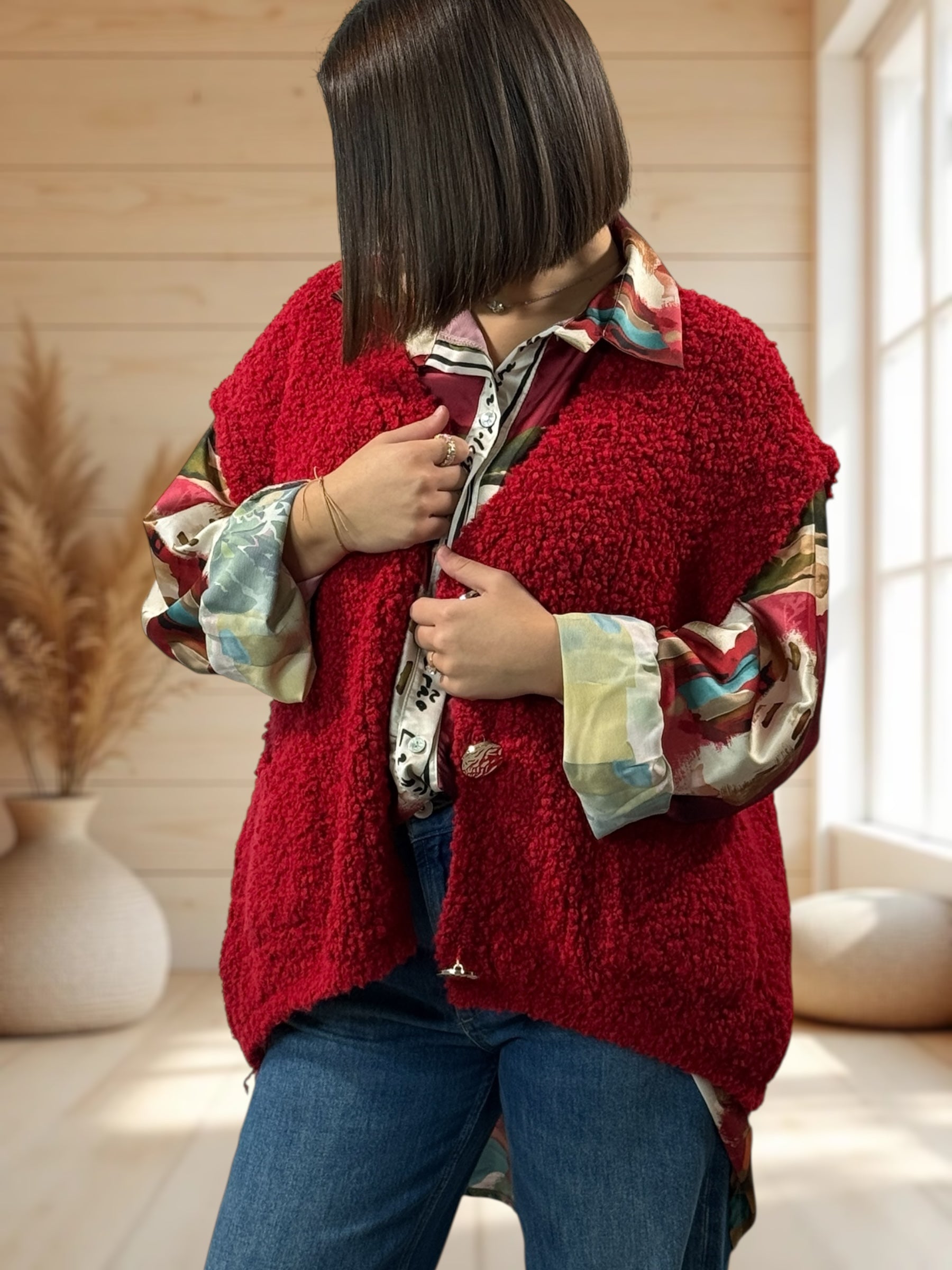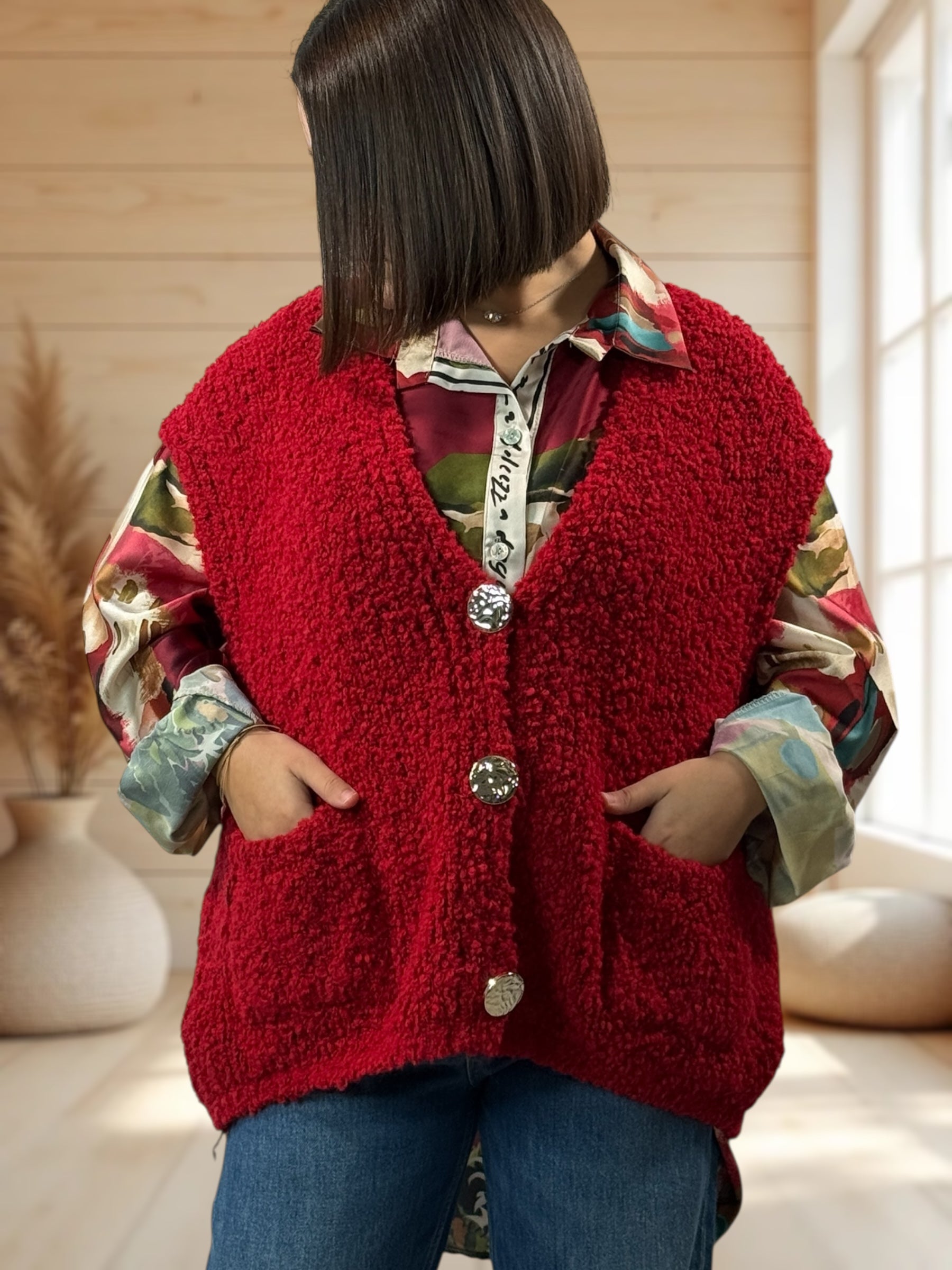NICO - GILET ROUGE SANS MANCHES 2 POCHES JUSQU'A LA TAILLE 56
