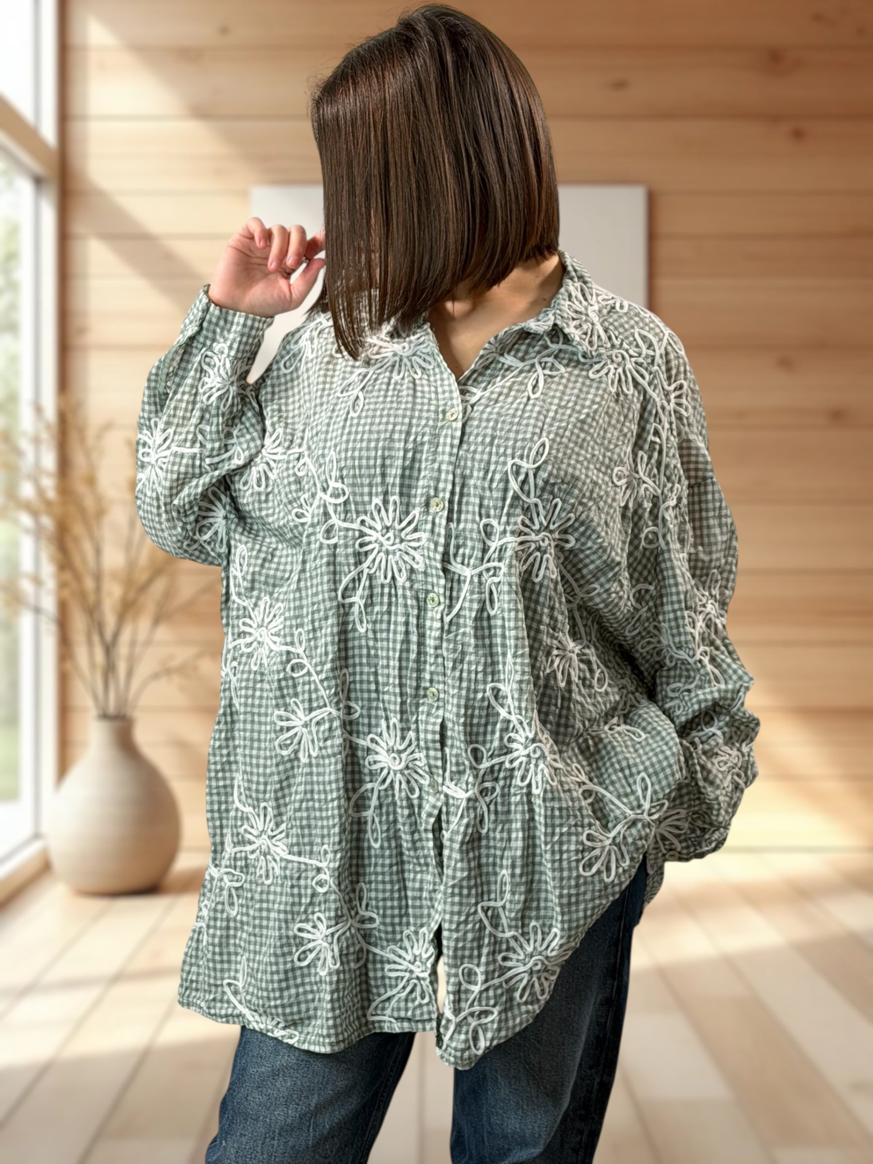 NINA - CHEMISE OVERSIZE VICHY KAKI JUSQU'A LA TAILLE 52