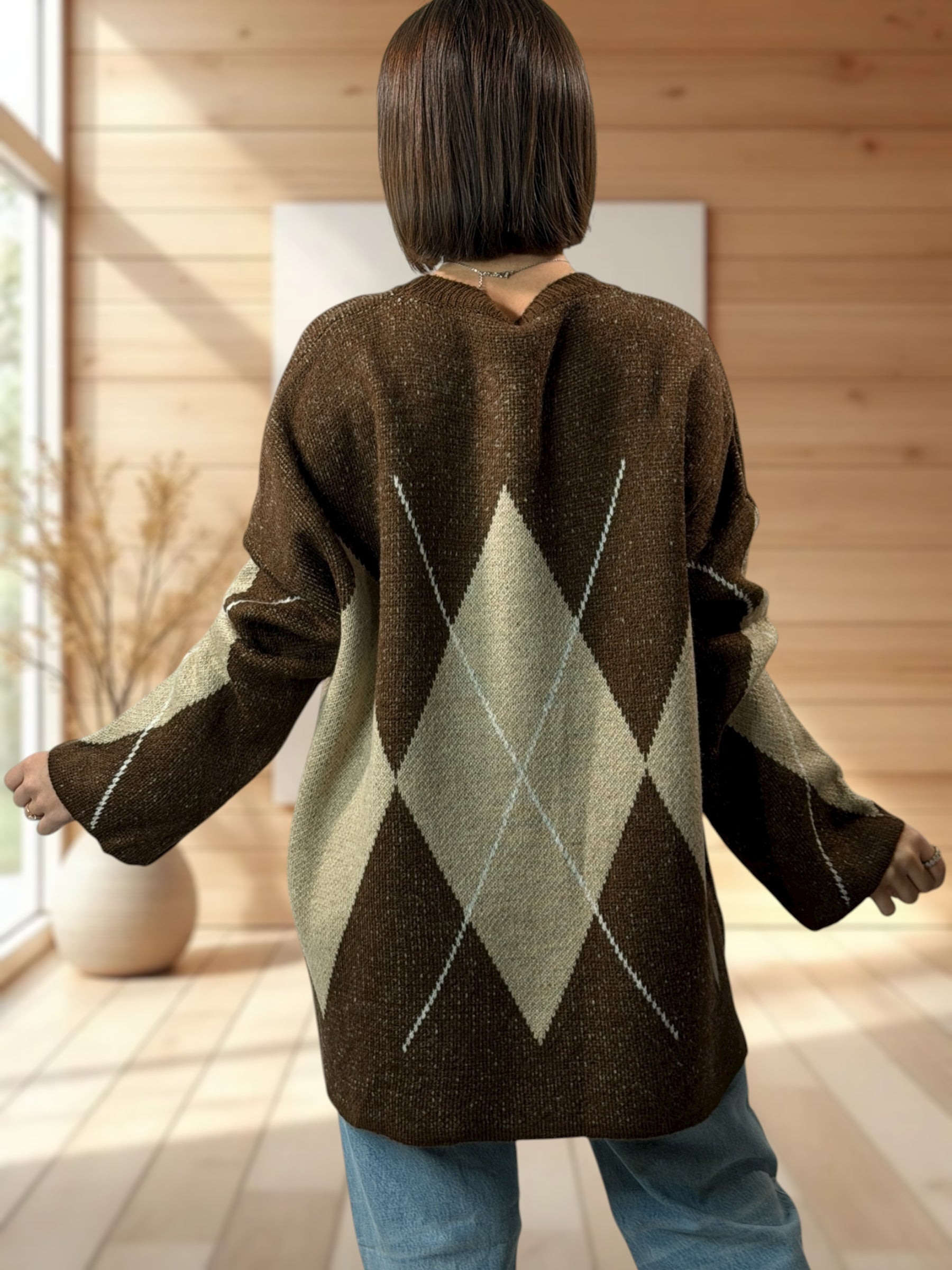 NOTTINGHAM - PULL OVERSIZE TARTAN MARRON JUSQU'A LA TAILLE 52