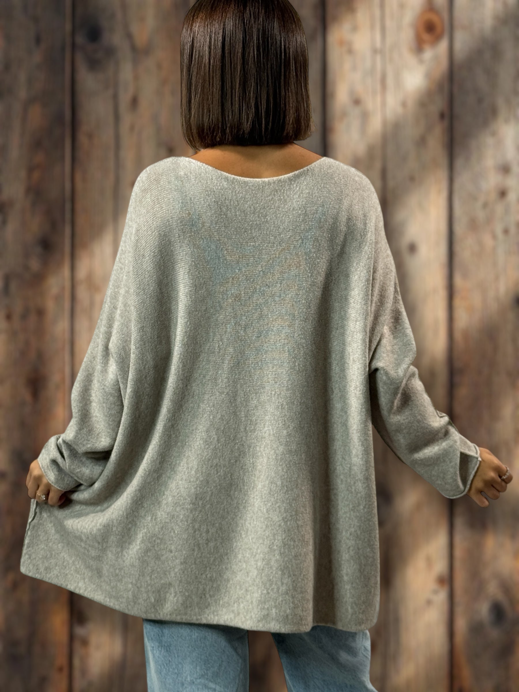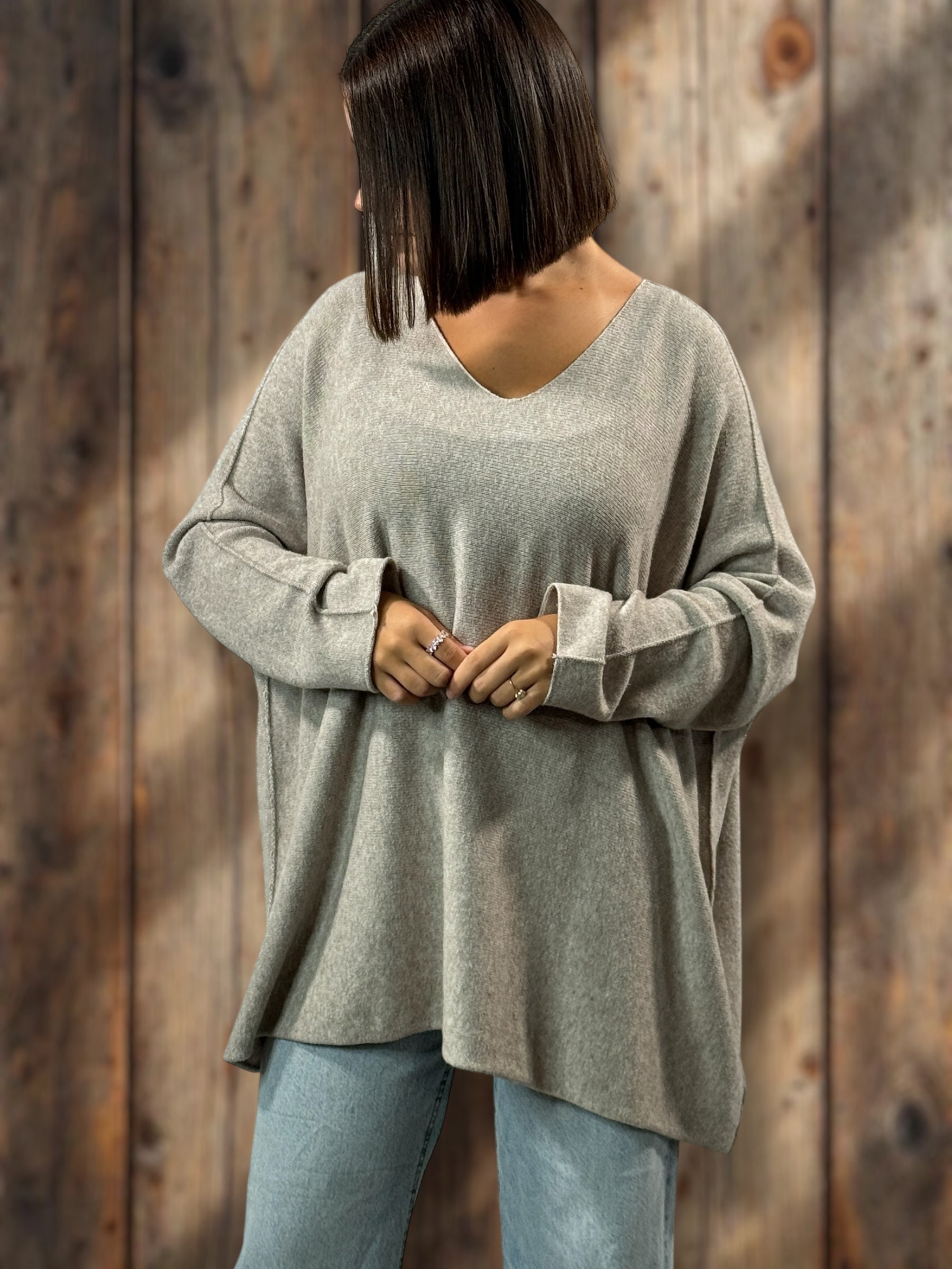 PALOMA - PULL OVERSIZE TAUPE JUSQU'A LA TAILLE 56