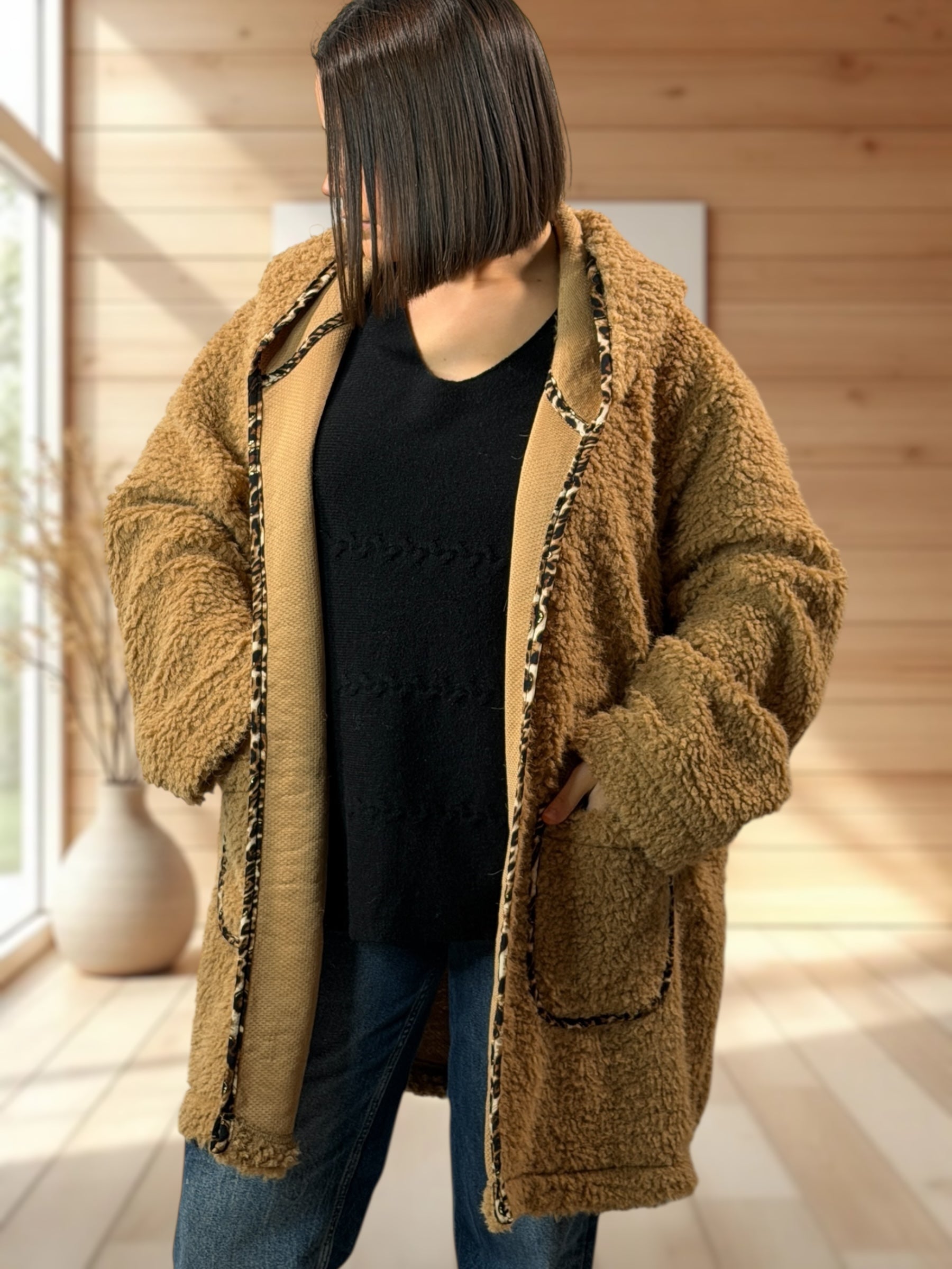 PAOLA - VESTE OVERSIZE CAMEL EN MOUMOUTE JUSQU'A LA TAILLE 54/56