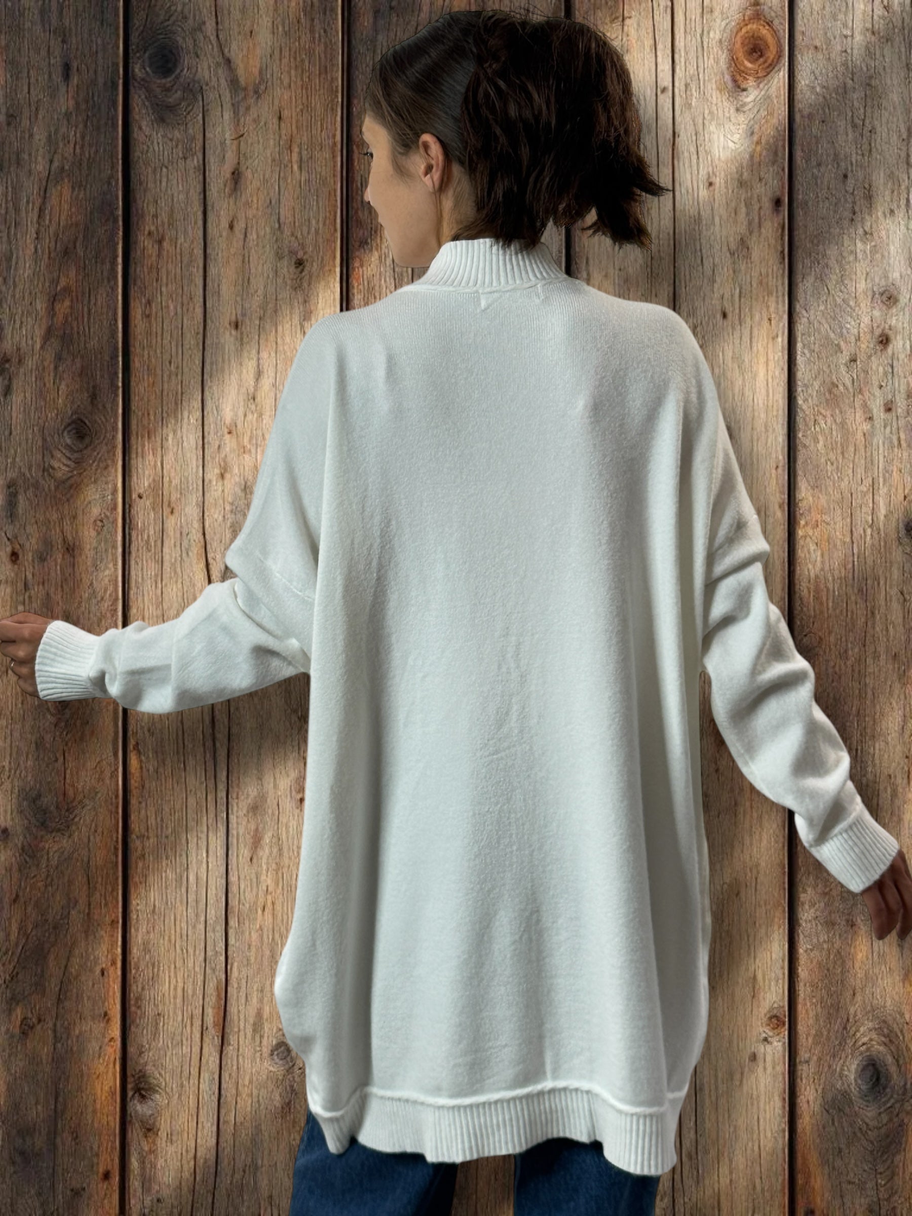 PATOU - PULL BLANC CASSE 2 POCHES JUSQU'A LA TAILLE 54