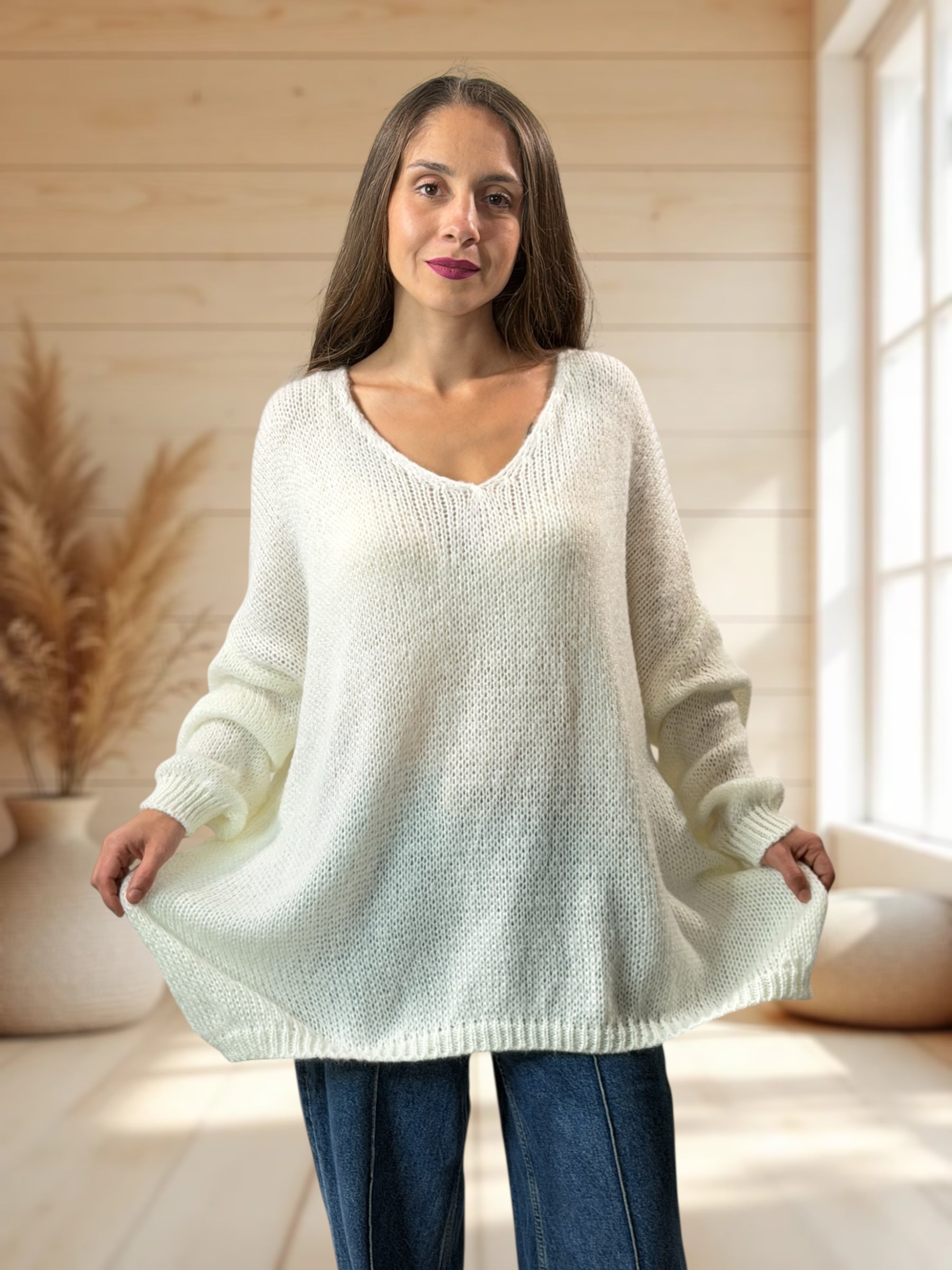 RAPHAEL - PULL BLANC CASSE JUSQU'A LA TAILLE 54/56