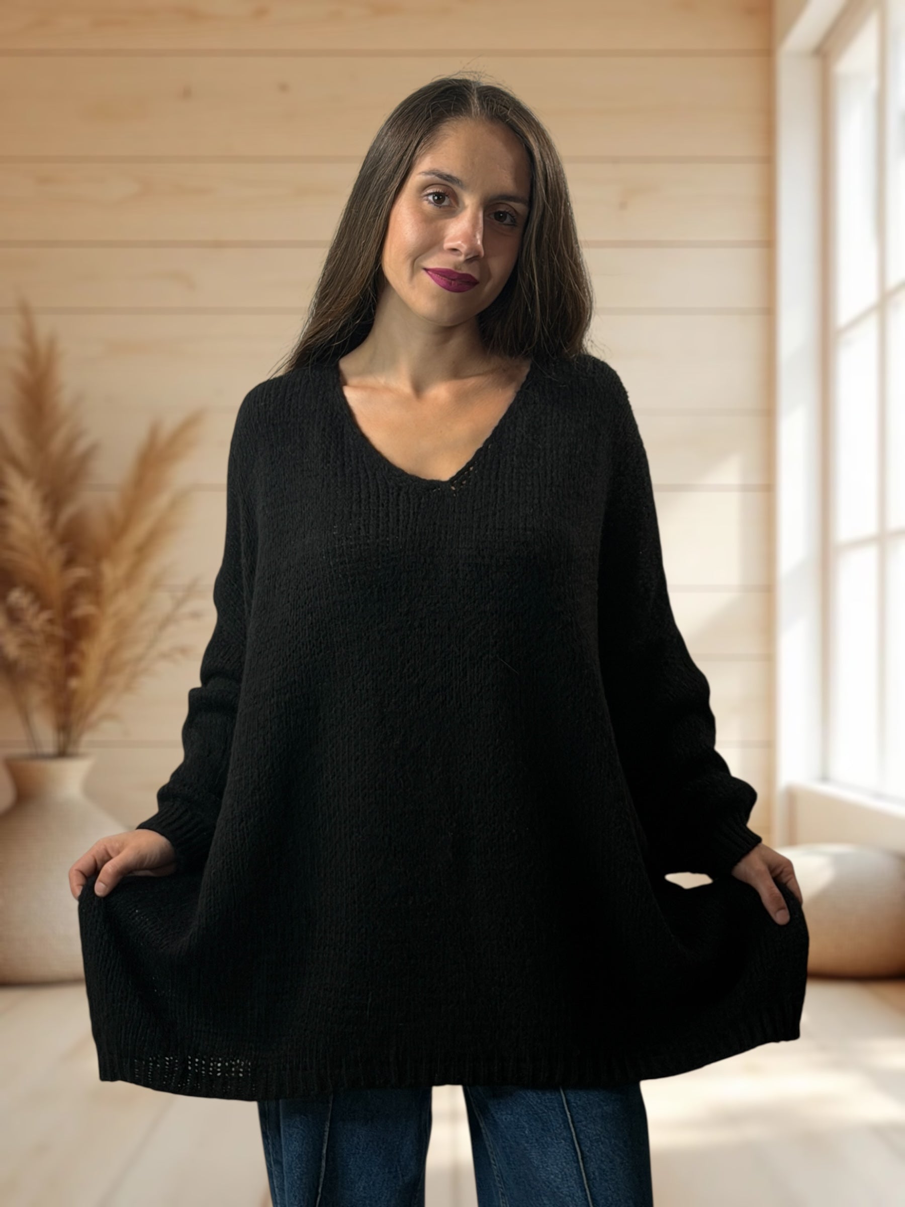 RICKOU - PULL OVERSIZE NOIR MOTIF SOLEILJUSQU'A LA TAILLE 56