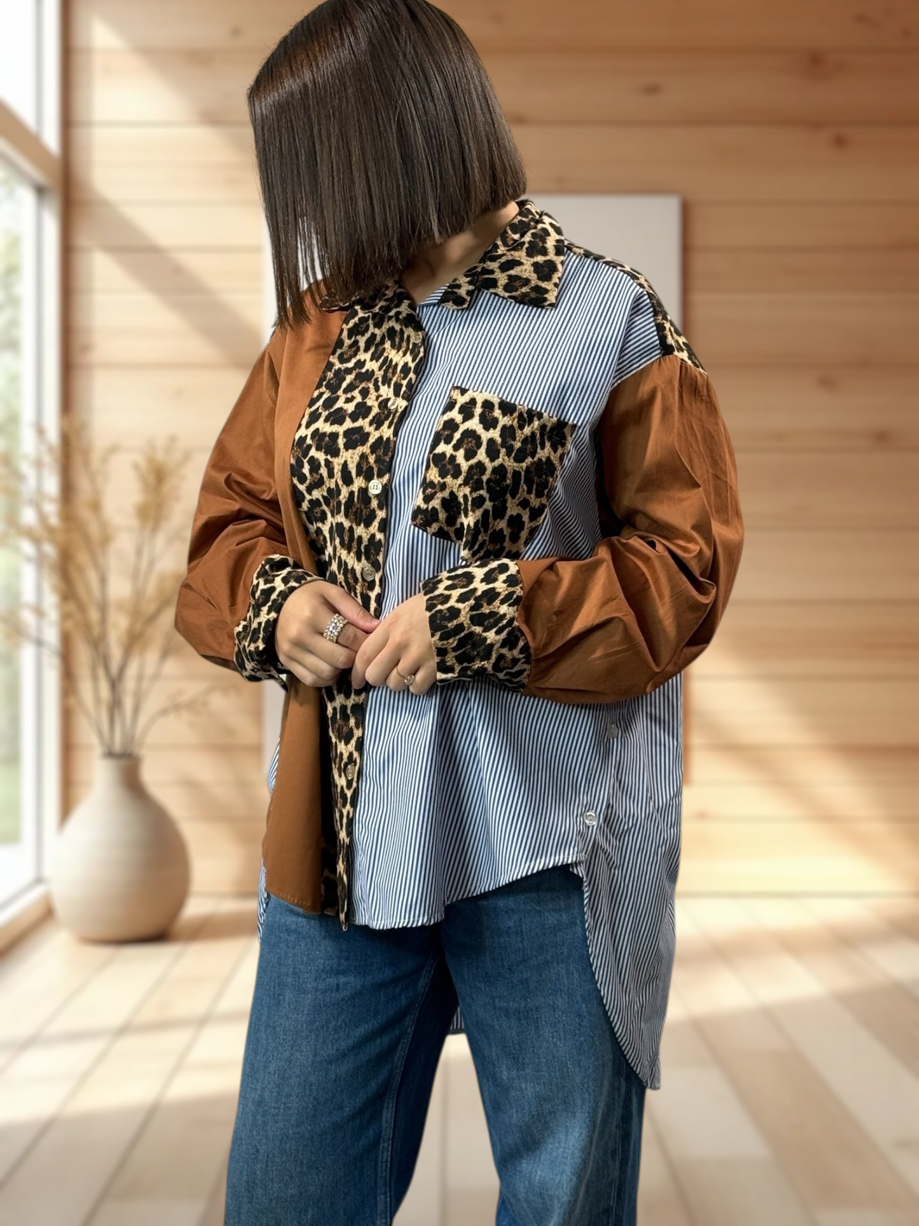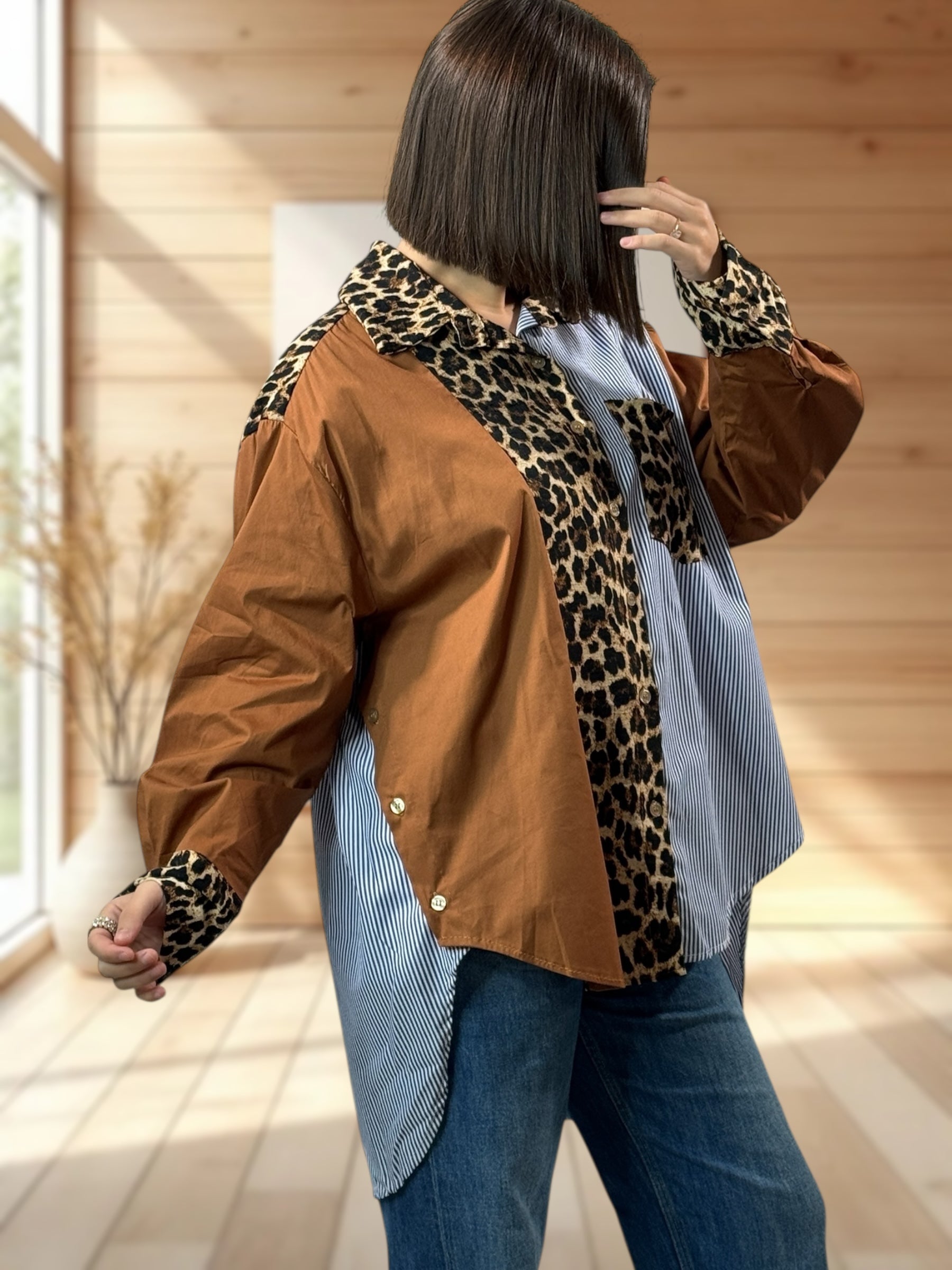 Osez le style audacieux avec notre chemise oversize ROSALINE ! elle vous transportera dans un monde artistique et avant-gardiste. Taille jusqu'à 52 pour un confort maximal. Faites un pas vers l'aventure!