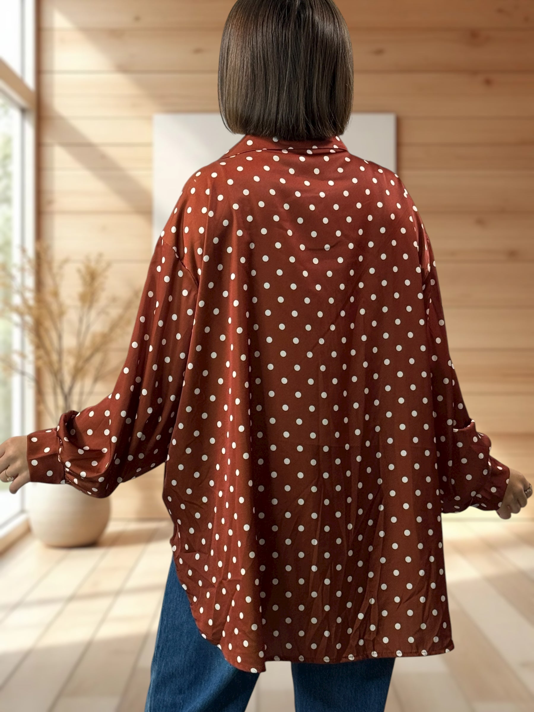 ROSAS - CHEMISE OVERSIZE ROUILLE A POIS JUSQU'A LA TAILLE 54
