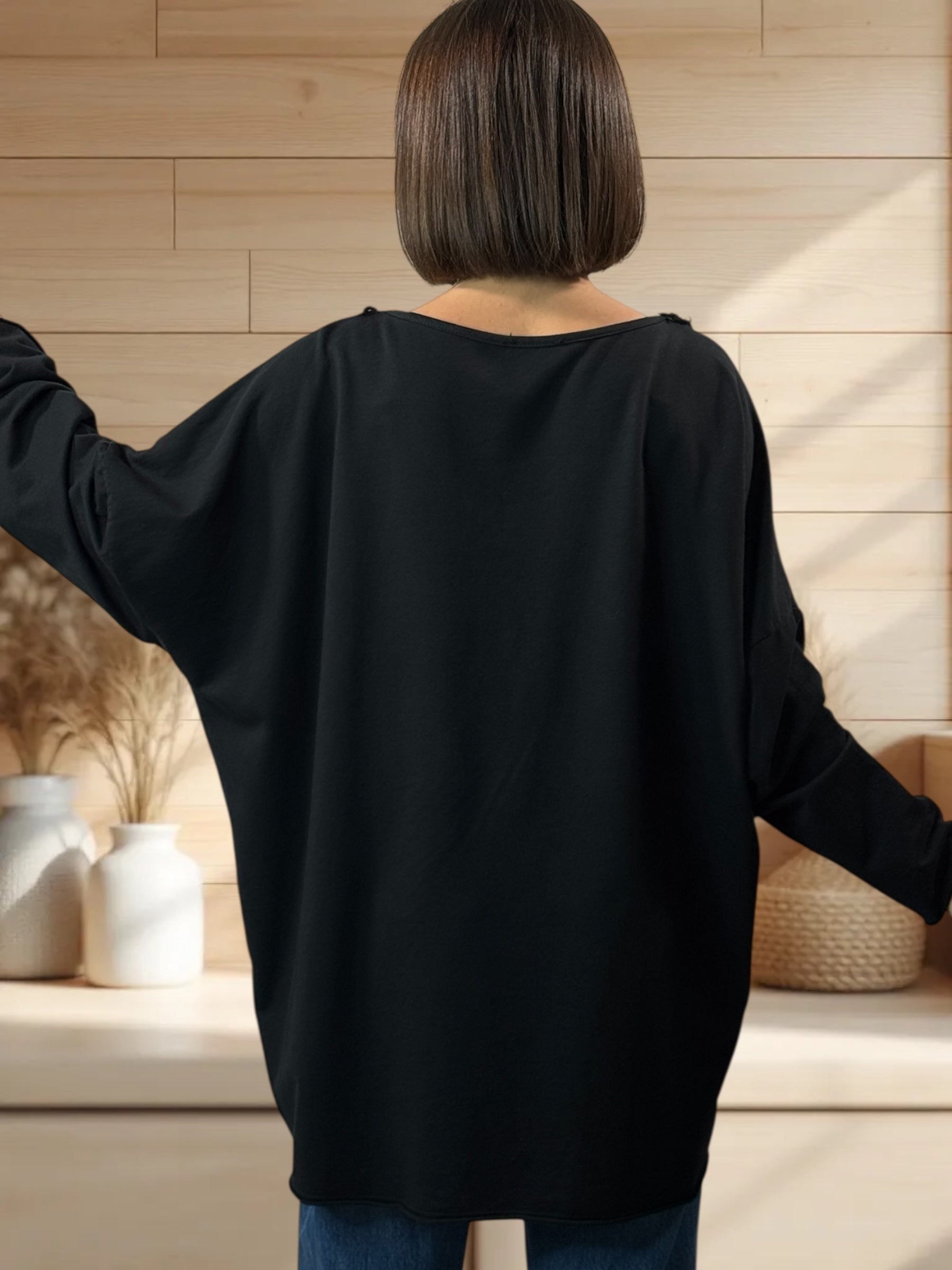 SANTIAGO - TOP NOIR EN COTON LOGO LEOPARD JUSQU'A LA TAILLE 56