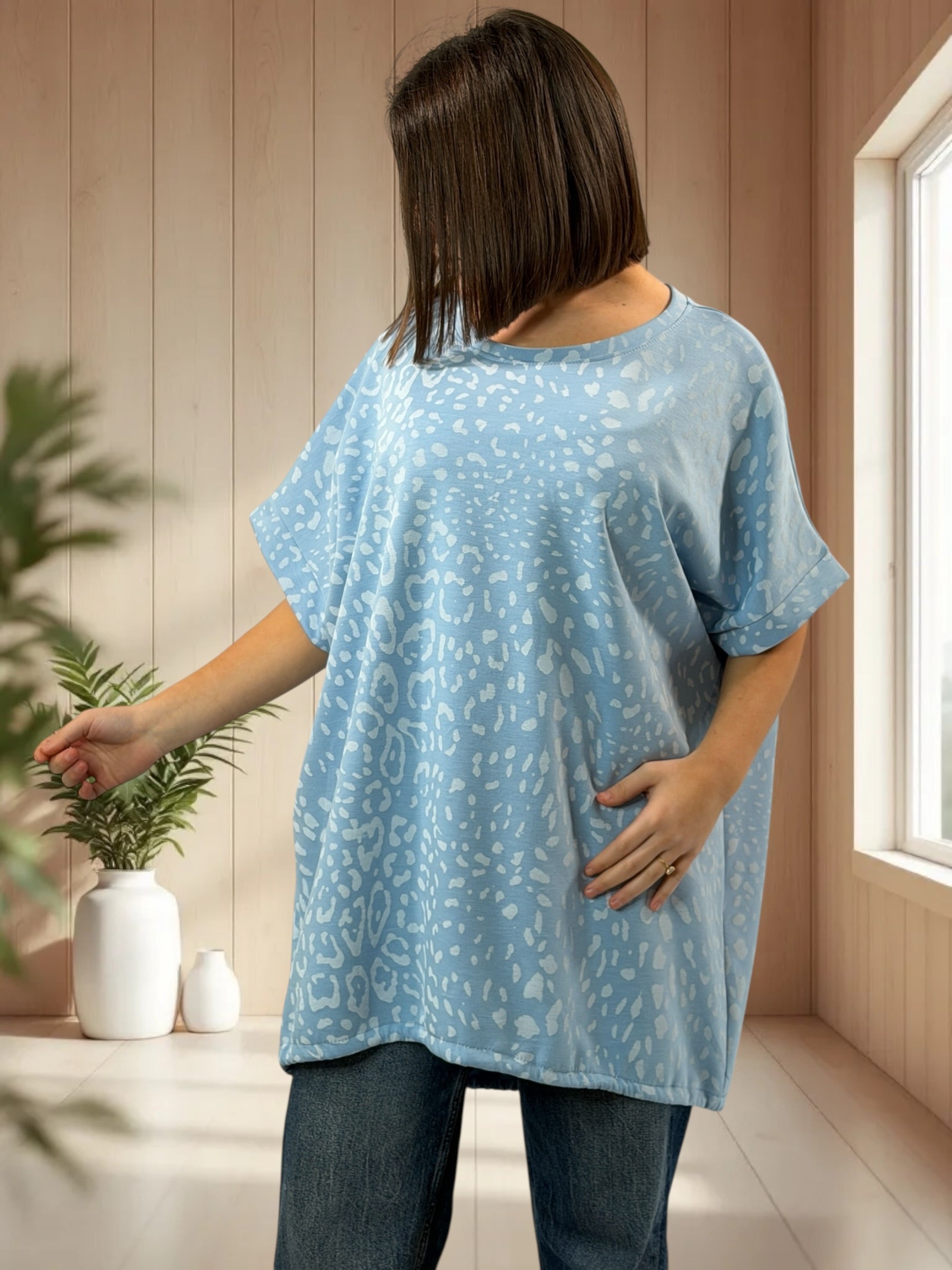 SAUVAGE - TEE-SHIRT OVERSIZE LEOPARD BLEU JUSQU'A LA TAILLE 54