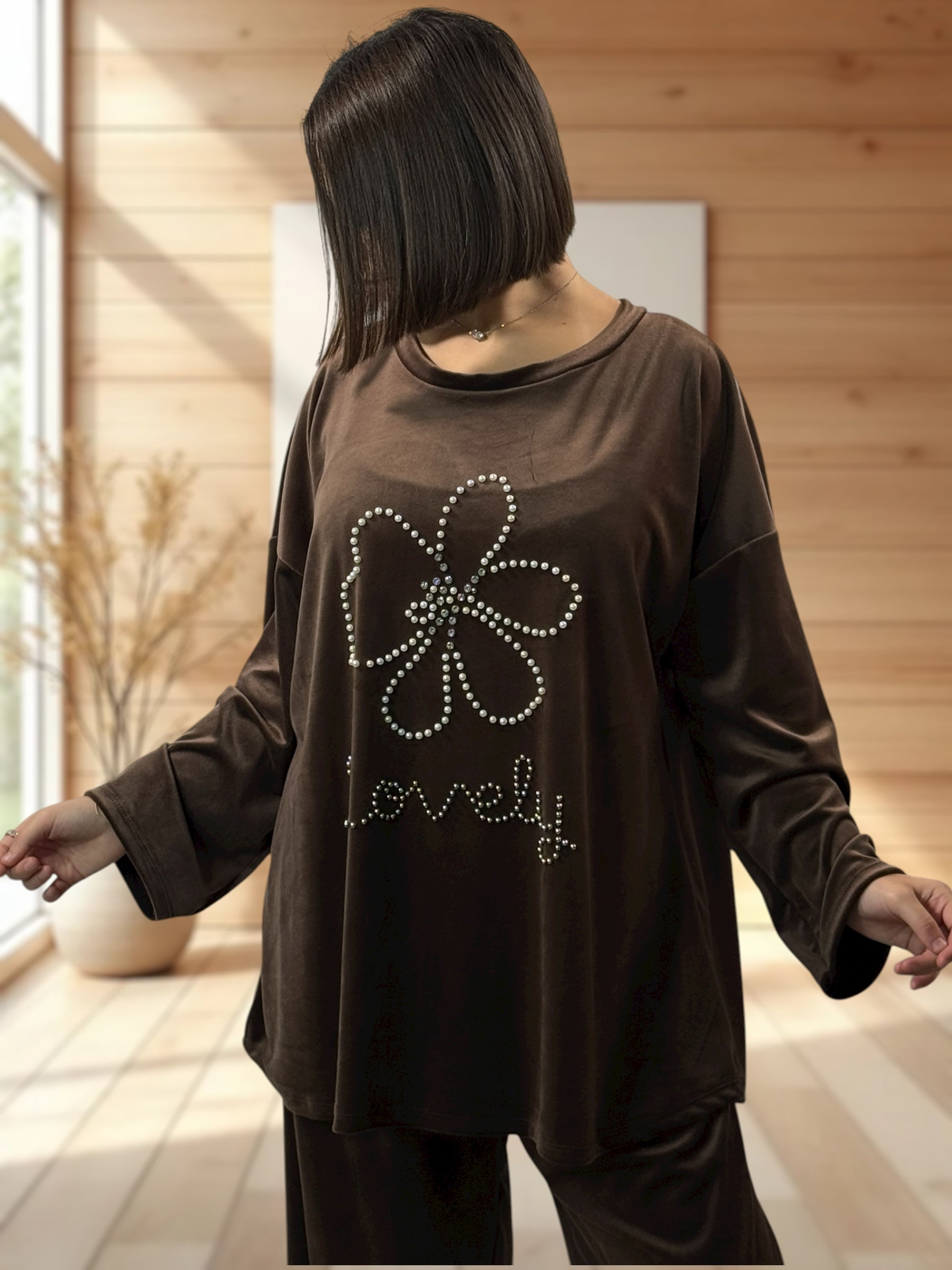 UMBERTO - ENSEMBLE MARRON EN VELOURS STRETCH JUSQU'A LA TAILLE 52/54