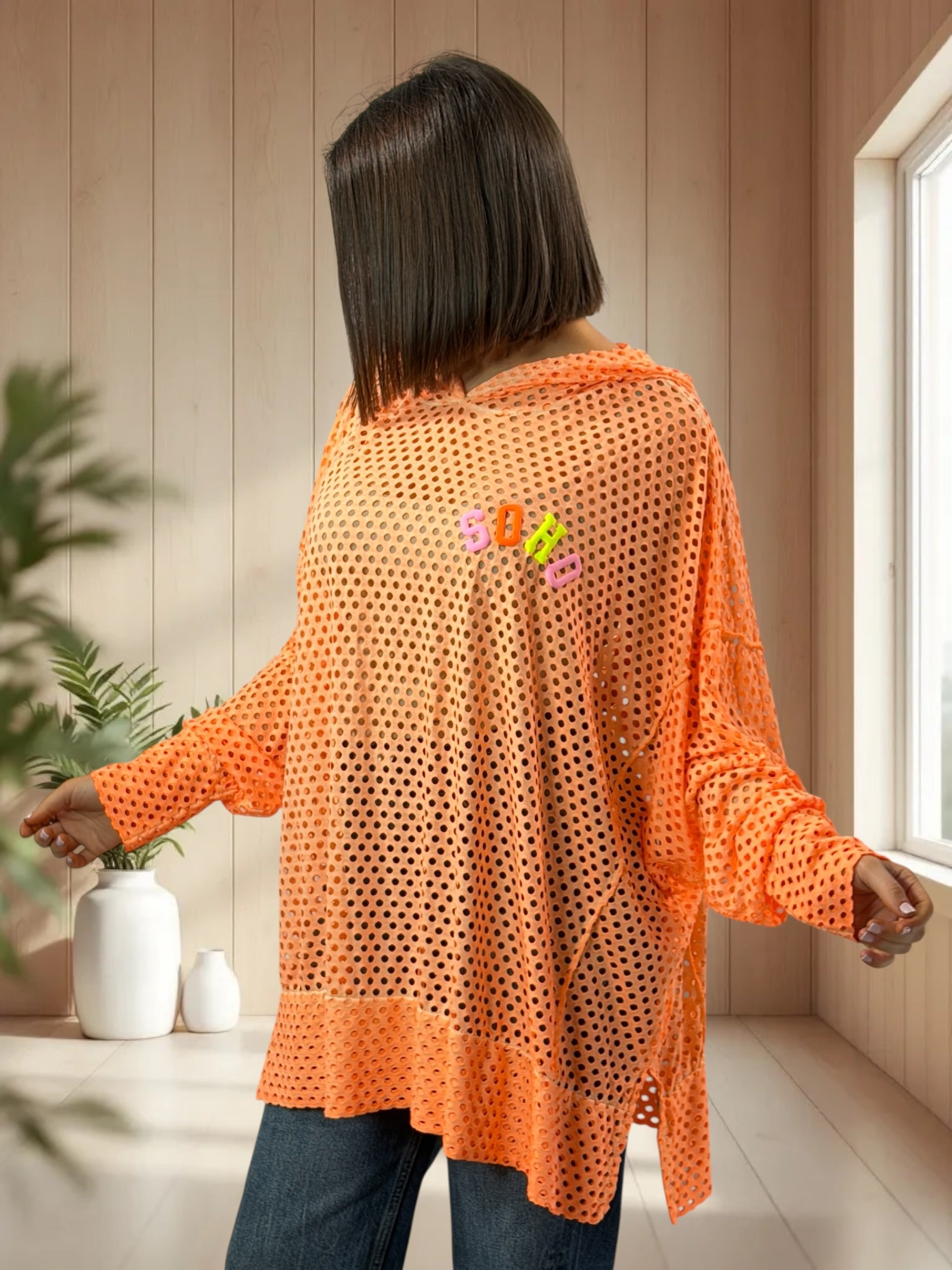 UMBERTO - TUNIQUE OVERSIZE ORANGE EN RESILLE JUSQU'A LA TAILLE 60