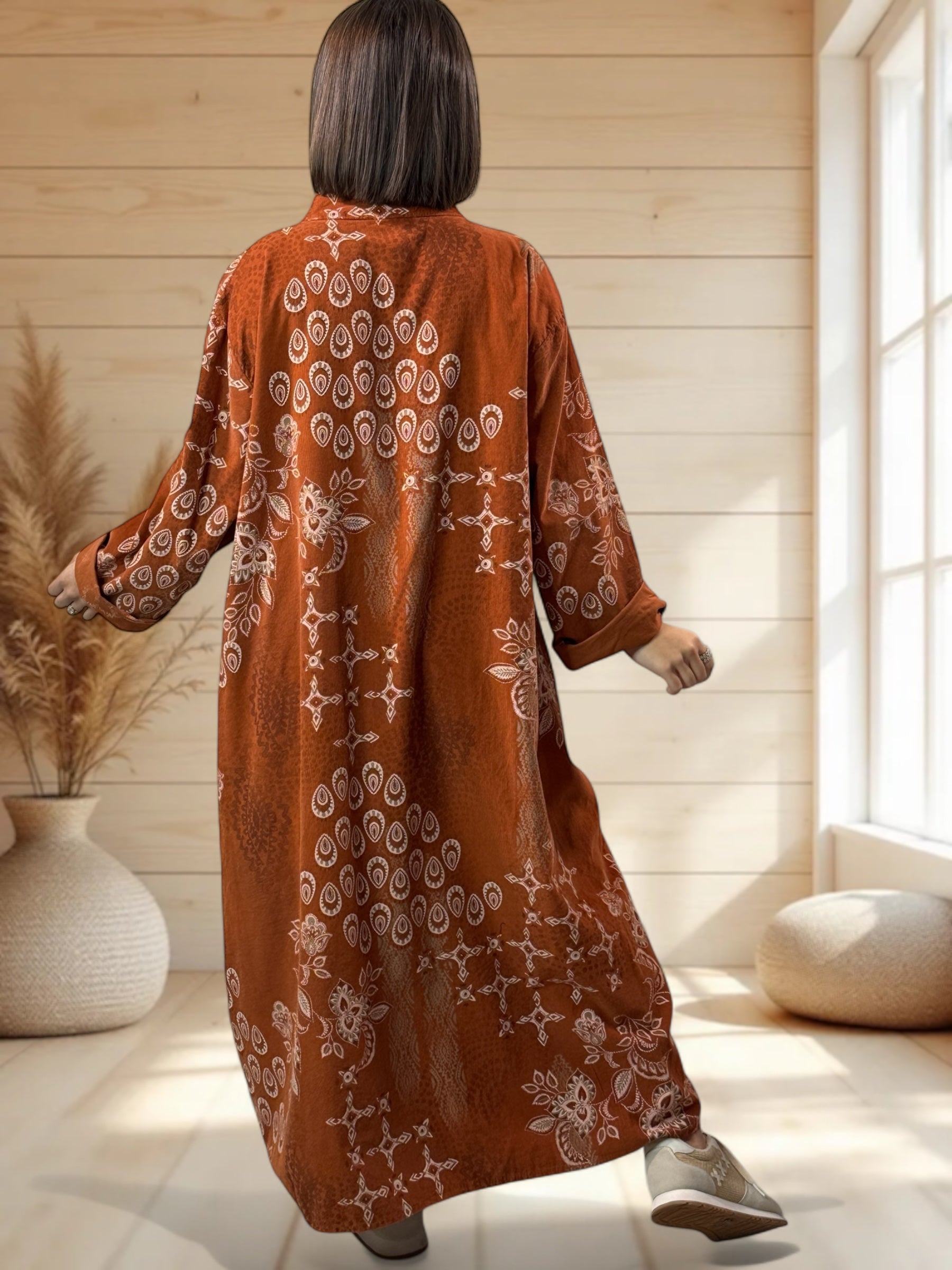 VERONE - ROBE ROUILLE A MOTIF EN VELOURS JUSQU'A LA TAILLE 52