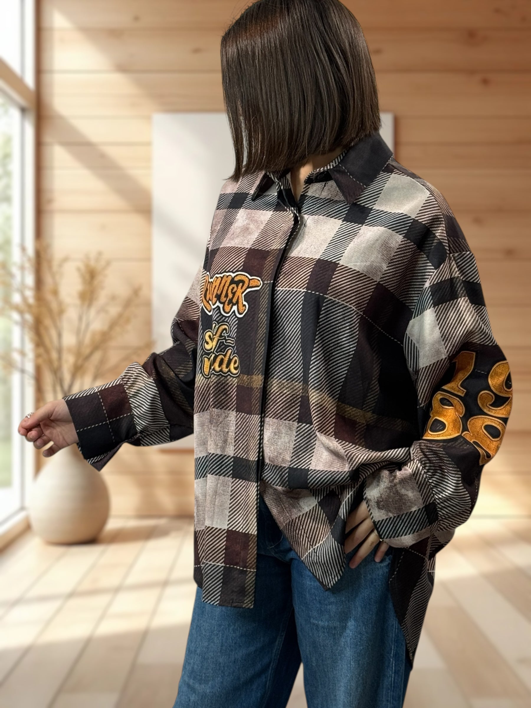 Osez le style audacieux avec notre chemise oversize YSOLINE ! elle vous transportera dans un monde artistique et avant-gardiste. Taille jusqu'à 52/54 pour un confort maximal. Faites un pas vers l'aventure!
