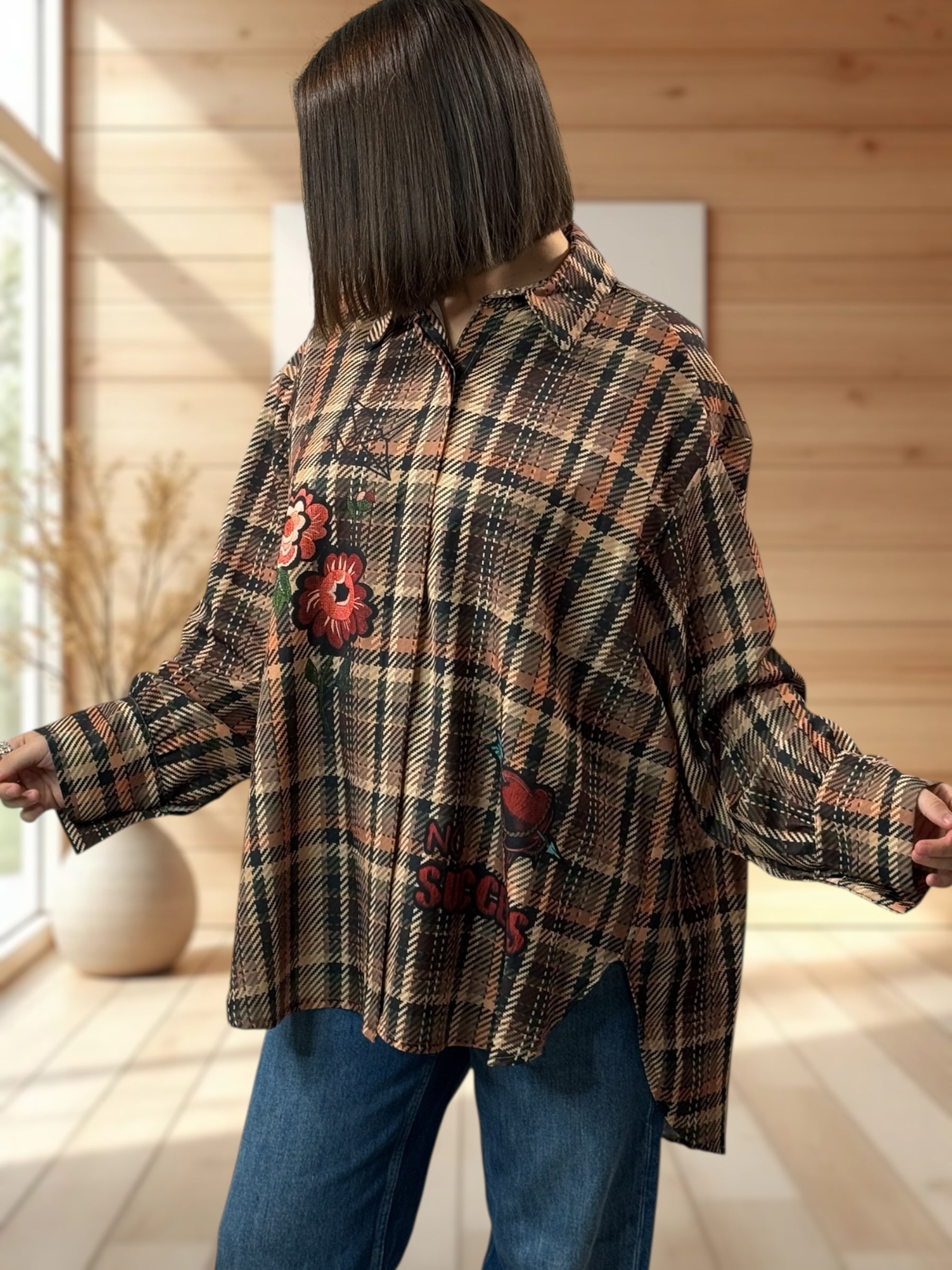 Osez le style audacieux avec notre chemise oversize YSOLINE ! elle vous transportera dans un monde artistique et avant-gardiste. Taille jusqu'à 52/54 pour un confort maximal. Faites un pas vers l'aventure!