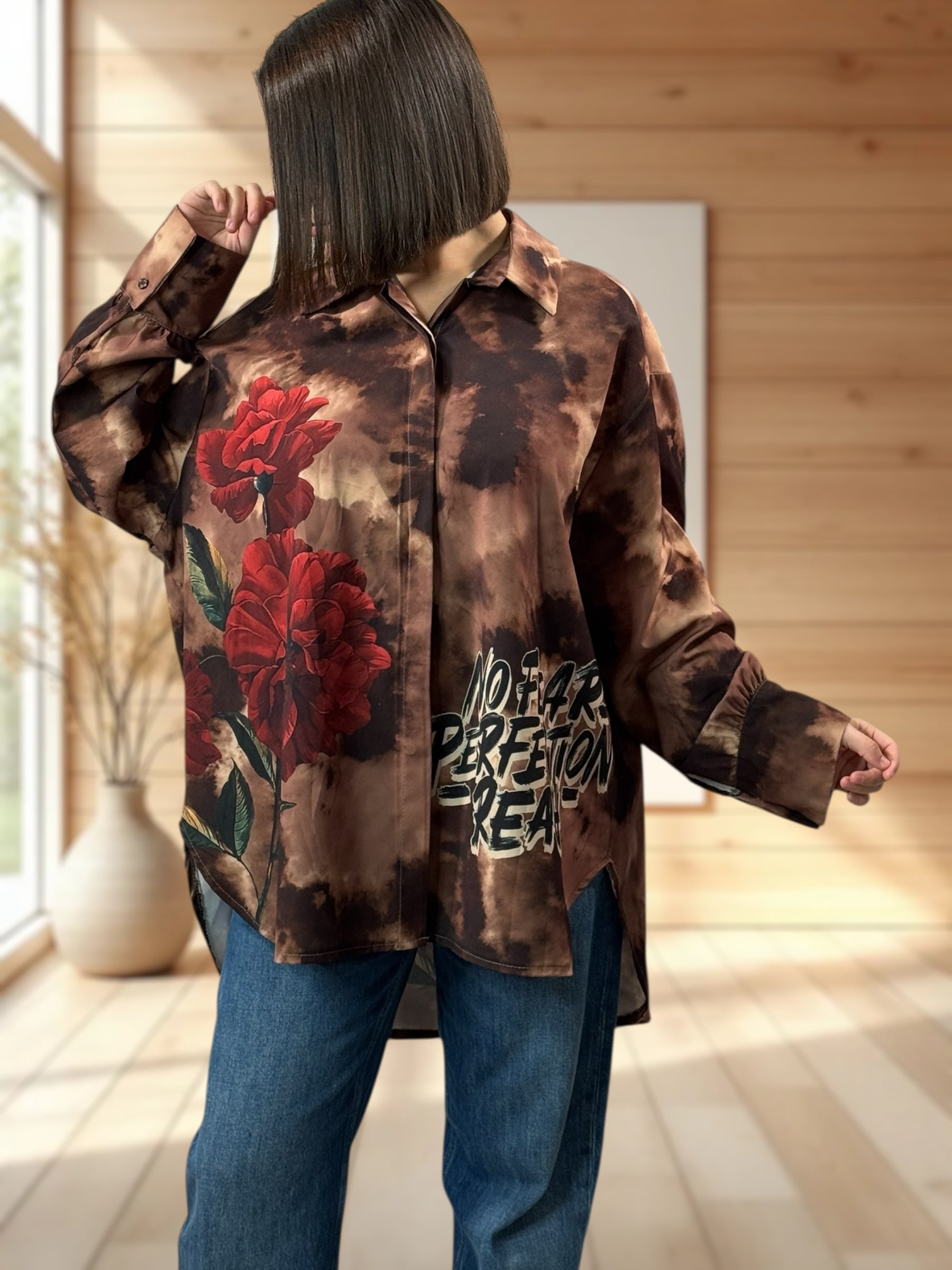 YSOLINE REF4 - CHEMISE OVERSIZE A MOTIF JUSQU'A LA TAILLE 52/54