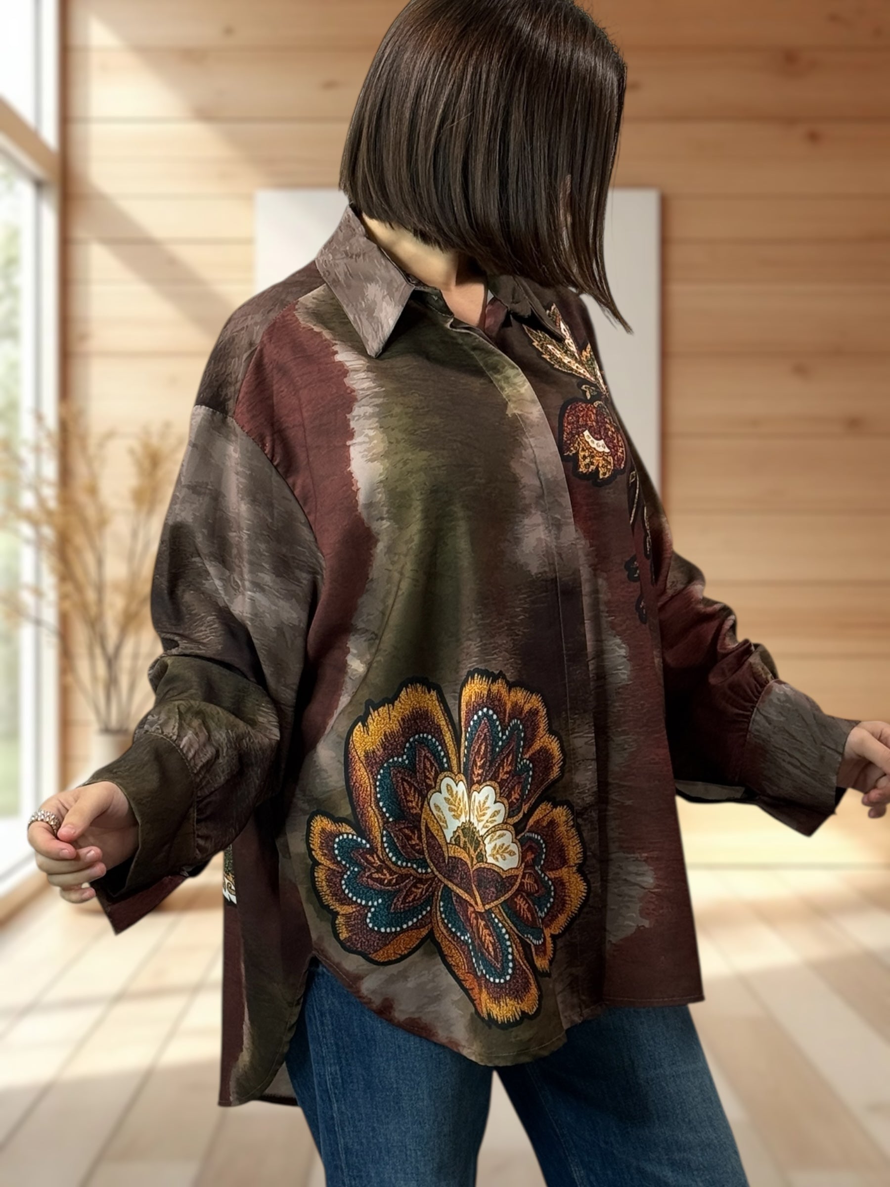 Osez le style audacieux avec notre chemise oversize YSOLINE ! elle vous transportera dans un monde artistique et avant-gardiste. Taille jusqu'à 52/54 pour un confort maximal. Faites un pas vers l'aventure!